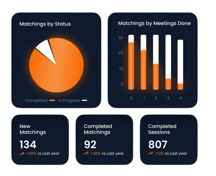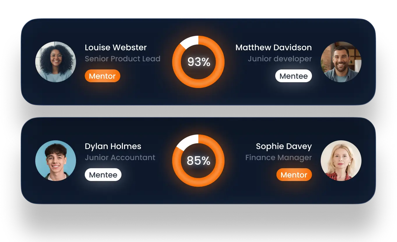 Smart algorithms eliminate manual matching effort and create perfect mentor-mentee pairs based on skills, goals and preferences.